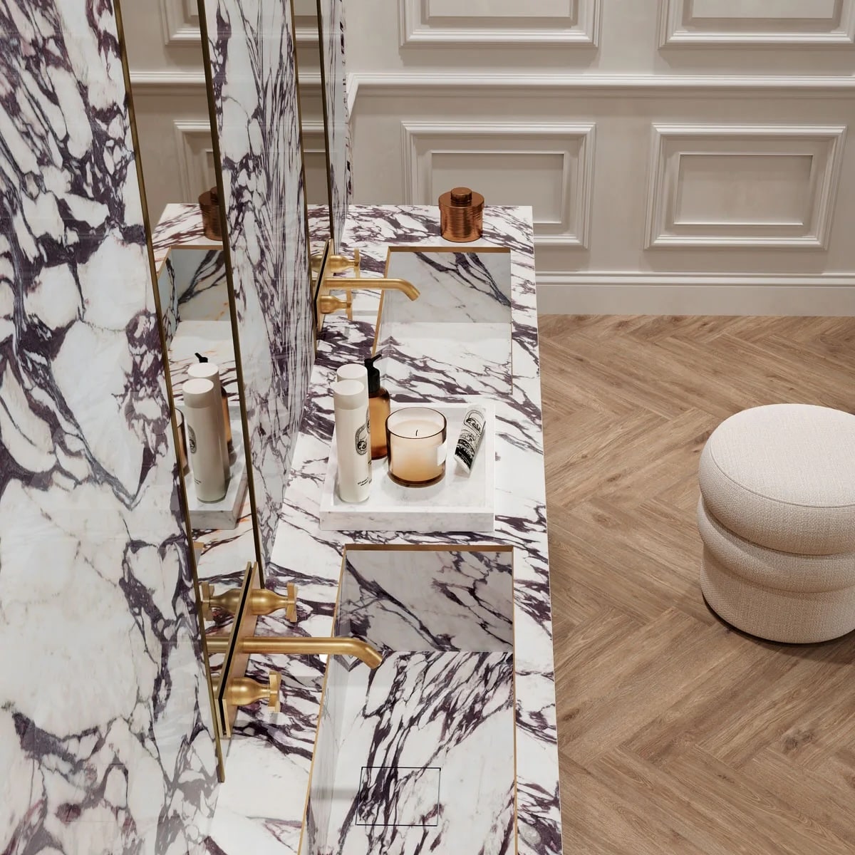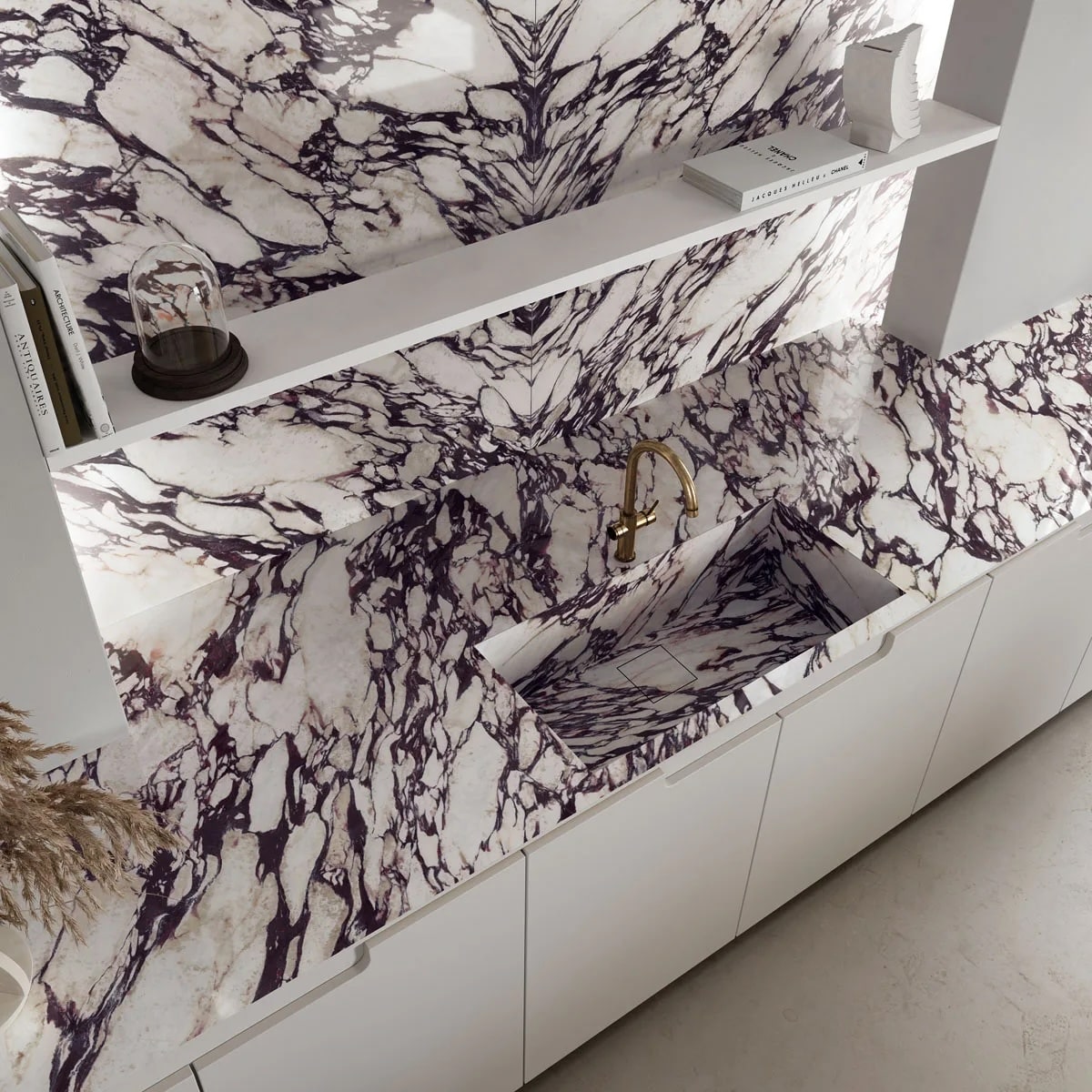 Keramikken forener naturstenens smukke æstetik med de bedste egenskaber fra moderne materialer. Det er et ideelt valg til eksklusive hjem med høje krav – bordpladen tilbyder det ikoniske udseende af ægte Calacatta Viola, men er samtidig ekstremt holdbar, pletafvisende og nem at vedligeholde i hverdagen.